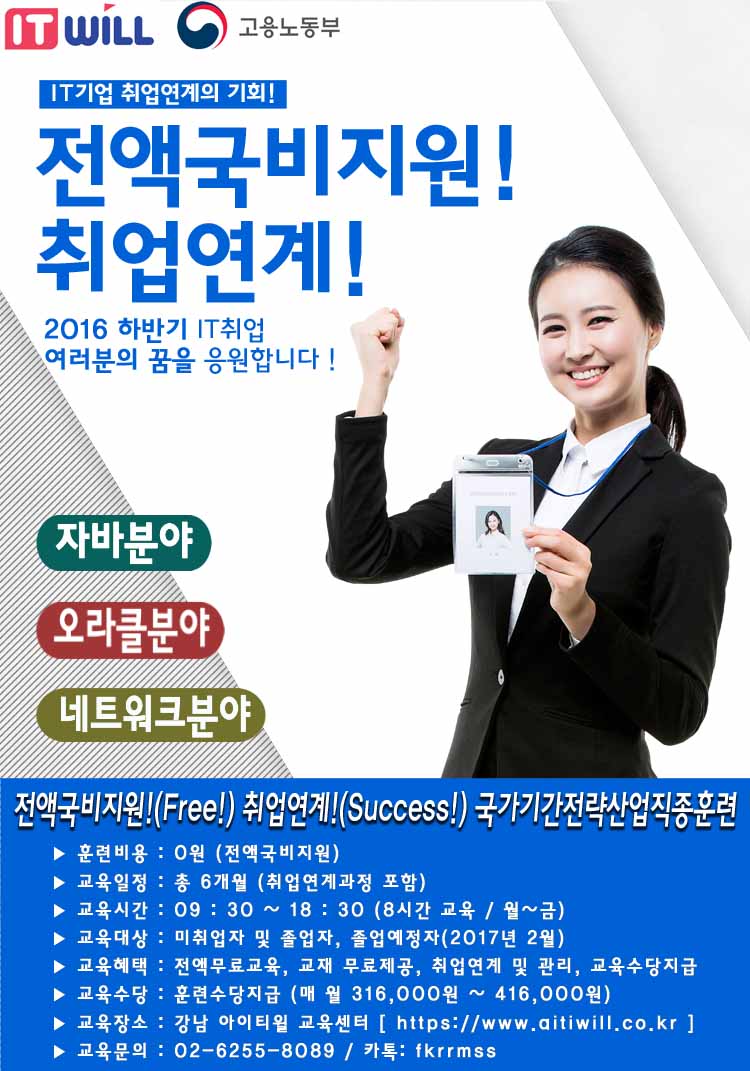 [취업성공패키지★] 자바 & 오라클DB 융합 웹개발자 취업연계과정(전액무료,수당지급)